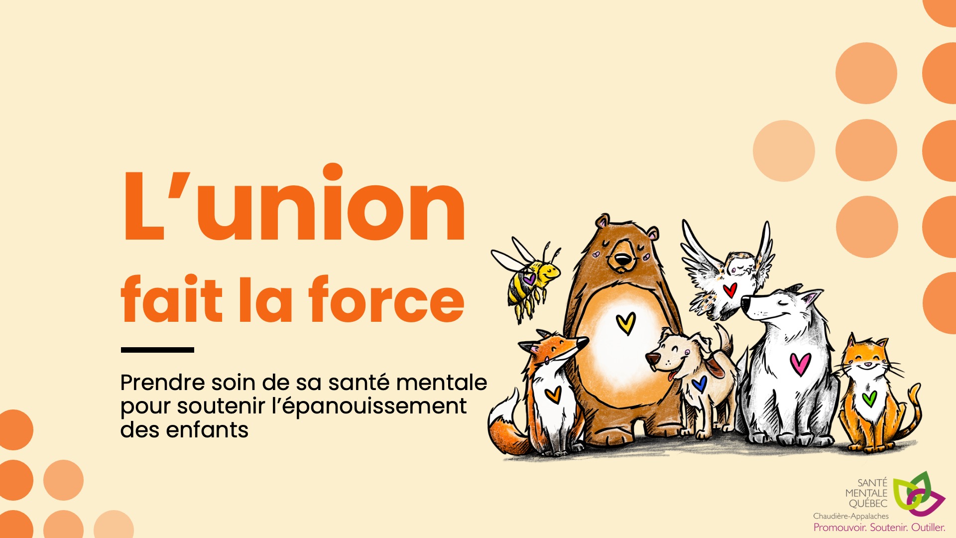 Il est possible de diffuser de façon intégrale, sans aucune modification, fragmentation ou déconstruction, le matériel produit par SMQ — Chaudière-Appalaches et le Mouvement Santé mentale Québec. Nous vous demandons :